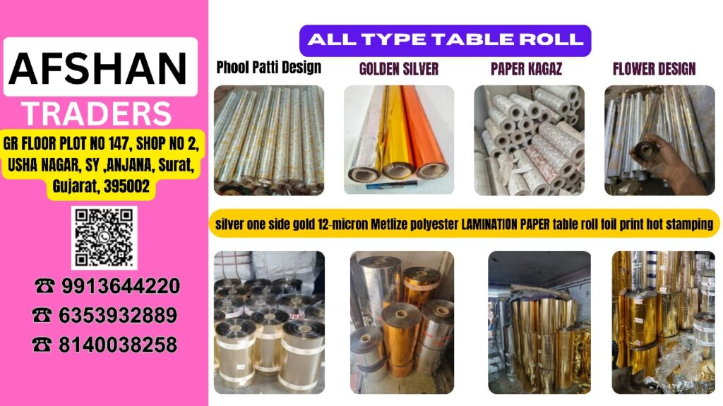 Afshan Traders, a leading name in the paper products industry, has announced an innovative approach to manufacturing and distributing table paper rolls across India. Based in Bhatena, Surat, Gujarat, the company is known for its commitment to quality and customer satisfaction and now offers customized table paper rolls to meet the diverse needs of its clients.