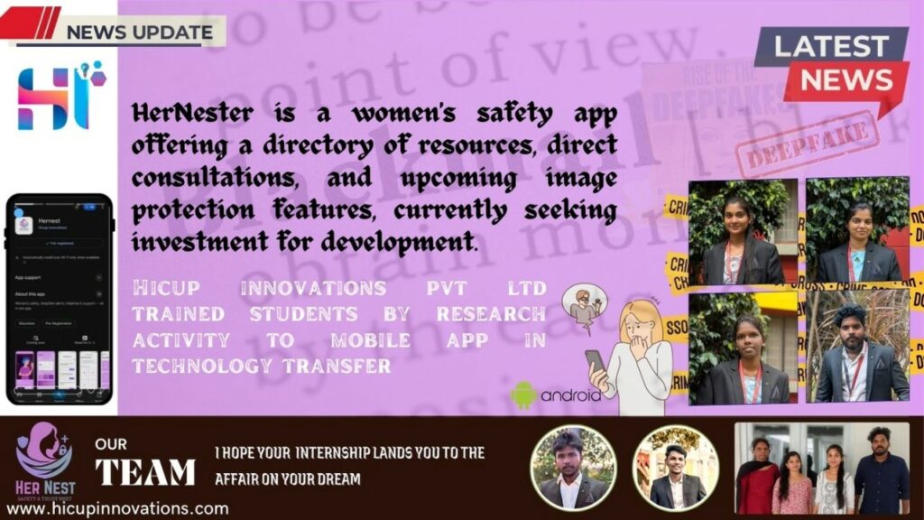 HerNester’s journey from a concept to a tangible application is a powerful narrative of synergy between academia and industry. The project’s foundation was meticulously laid by students from SNS College in Coimbatore, who, during their internship at HICUP Innovations Pvt Ltd, were given a crucial mission: to conduct in-depth research into the pressing safety issues confronting women today.