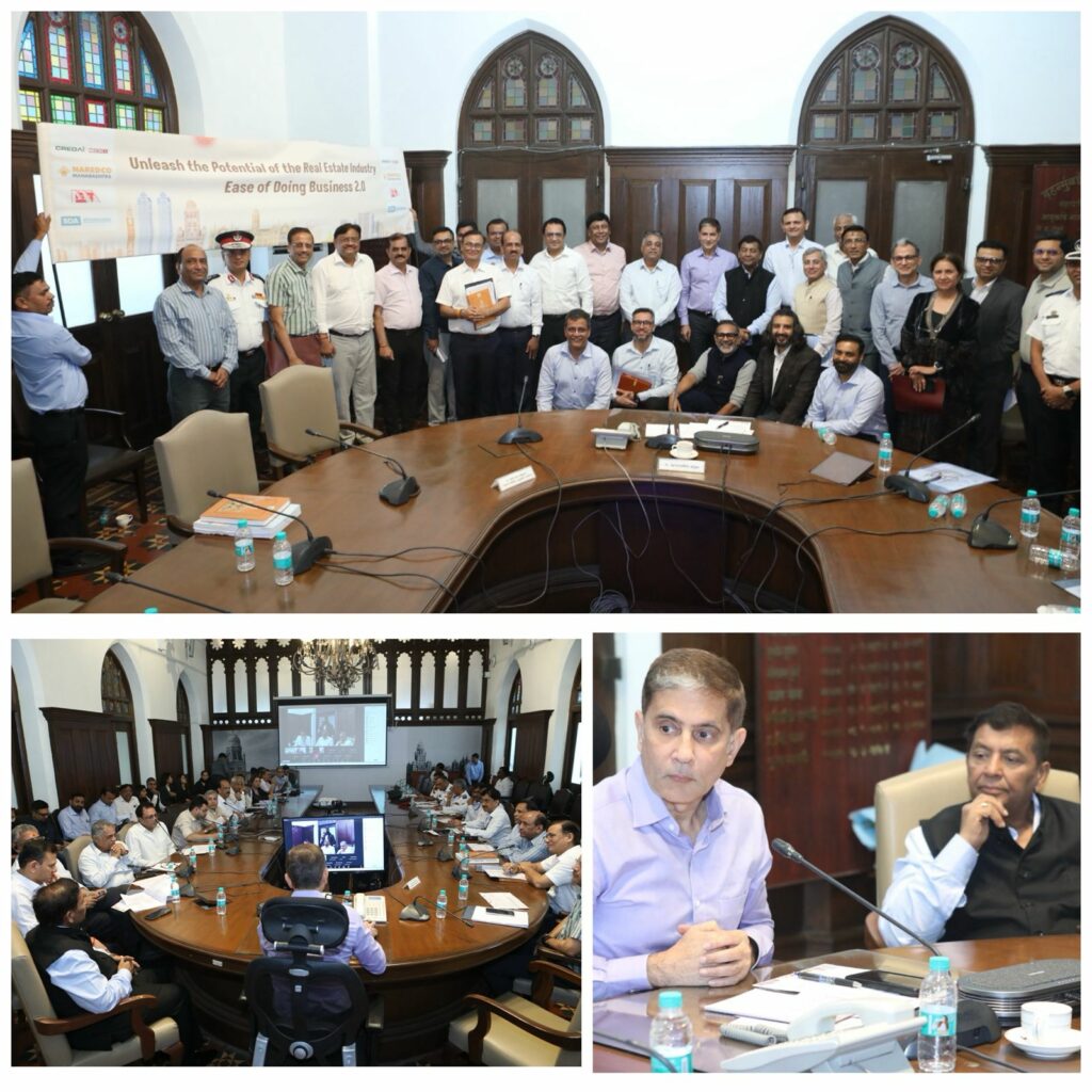 Mumbai, October 24, 2025 — Building on the momentum of the convergence meet across various real estate associations, Shri Sukhraj Naharji, President CREDAI MCHI, and Shri Rushi Mehta, Secretary, CREDAI-MCHI organized a joint meeting with the Municipal Commissioner, BMC, Shri Bhushan Gagraniji and his team where the collaborative force of the real estate Indusrty, was once again evident as representatives from CREDAI-MCHI, NAREDCO, BDA and PEATA held a marathon meeting with the Municipal Commissioner discussing various policy issues and proecdural bottlenecks affecting the real estate sector. In a significant step to strengthen collaboration between Mumbai’s municipal administration and the real estate industry, Municipal Commissioner Shri Bhushan Gagrani (IAS) has announced the formation of a Steering Committee comprising representation from CREDAI-MCHI, NAREDCO, PEATA, and BDA along with officers from various departments of MCGM, including the fire offie which would meet fortnightly to dicuss various key issues, policy matters and opportunities for Mumbai’s Real Estate Sector. The meeting would be chaired by Deputy Chief Enginer (Office of the Municipal Commissioner) Shri Chandrashekhar Undge and BMC Commissioner Shri Bhushan Gagrani ji assured that he would also partake in such meetings on a monthly basis. This structure will ensure that key decisions and recommendations are tracked, implemented, and reviewed regularly.